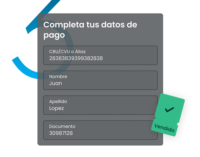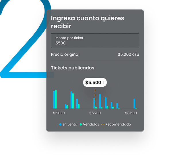 Definí el precio de ventaIndicá cuánto querés recibir por tus entradas, el medio de pago donde querés recibir el dinero y publicalos a la venta ¡Vas a poder modificar estos datos en cualquier momento!