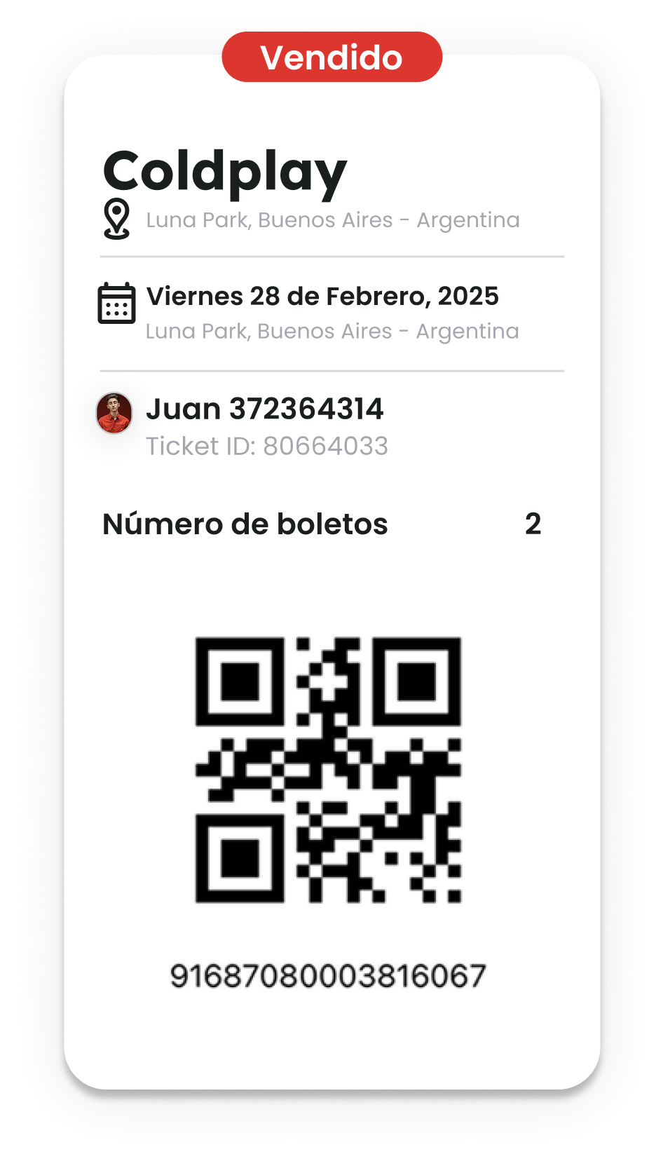 Seleccioná las entradasElegí qué entradas querés vender. Podés venderlos todos juntos a un comprador o separados a diferentes personas.